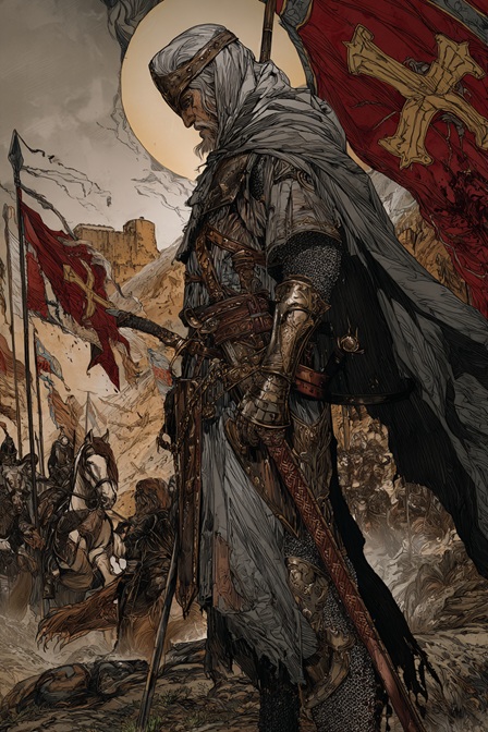 En SpainWars queremos detenernos especialmente en el tratamiento de Ricardo y Saladino, porque es ahí donde la novela demuestra una madurez notable. Tolmarher no cae en el esquema fácil de levantar a uno a costa de simplificar al otro. Lo que hace es mostrar dos modos de ejercer el poder bajo condiciones extremas. Ricardo representa la energía del rey-guerrero, la voluntad de avance, la necesidad de sostener el prestigio por la acción visible, la furia del mando cuando el tiempo aprieta. Saladino, en cambio, aparece como un señor del equilibrio, de la paciencia, del cálculo, del desgaste administrado con inteligencia. No son dobles perfectos ni reflejos moralizantes, sino dos centros de gravedad histórica que el texto coloca en tensión hasta conducirlos a esa zona final donde la espada y la palabra terminan tocándose.